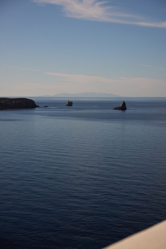 Suites vary in size and configuration, from the Junior Suite to the Two-Bedroom Luura Villa, which offers approximately 130 square metres in total, a private pool, natural greenery, and a lounge and sunlounger setup that makes leaving feel genuinely optional. Each suite is individually curated, and uninterrupted Aegean views are a constant across all of them. The images from the property suggest spaces that feel lived-in rather than staged: low furniture in earth tones, linen textures, dark iron window frames that hold the sea like a fixed point on the horizon.